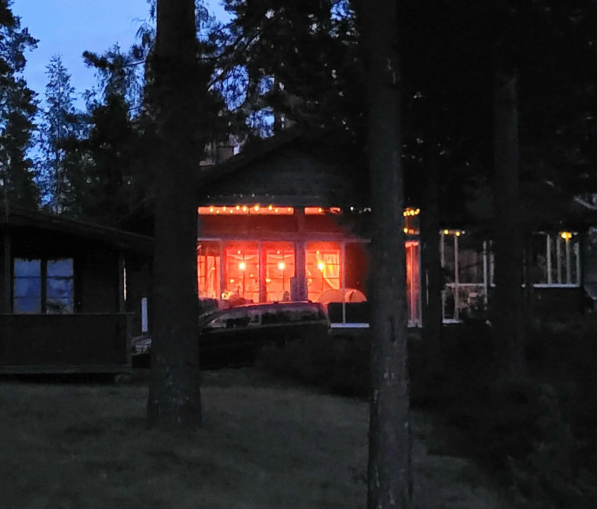 Relax and cozy up by the fireplace at the glass porch in our house.